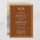 Photographie moderne bordée brune bordée minimaliste invitations de mariage modèles avec initiales en haut pour vous de customiser.