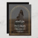 Faire-part de mariage photo moderne avec cadre en arc doré Célébrez votre amour avec un faire-part de mariage photo moderne et élégant. Ce design présente une image captivante du couple heureux encadré dans une arche dorée frappante. Le design minimaliste met l'accent sur la connexion du couple et crée un look sophistiqué. L'invitation utilise un arrière - plan gris fusain neutre, fournissant un cadre sophistiqué pour l'arc doré et la photo du couple. Les noms sont affichés dans une police épurée et moderne, apportant une touche d'élégance au design général.