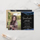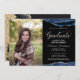 Créez une invitation de graduation mémorable avec ce design avec un élégant noir et bleu avec des accents d'argent.