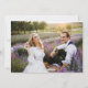 Le bord gauche de cette élégante faire-part de mariage moderne est orné d'une bordure d'aquarelle violette ornée d'une parties scintillant en faux or. Le texte personnalisable combine écriture manuscrite dorée, cuivre et polices italiques sur un arrière - plan bleu turquoise. Remplacez facilement l'exemple d'image au dos par votre propre photo horizontale.