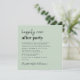 Faire-part minimaliste de mariage vert sauge moderne et invitation à la réception. L'avant présente "Happily Ever After Party" dans un script contemporain et des lettres modernes audacieuses. Personnalisez votre invitation et ajoutez vos noms dans un script de type signature. Le verso présente votre photo mariage, vos prénoms et votre date de mariage.