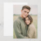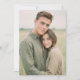 Cette invitation de mariage présente un design chaleureux et intime avec deux personnes debout l'une près de l'autre dans un cadre extérieur, entourées d'un paysage naturel flou. La palette de couleurs est dominée par des tons terreux de verts et de beiges atténués, créant une atmosphère sereine et harmonieuse. La technique d'art photographique capture un moment candide, soulignant l'authenticité et la simplicité. L'ambiance générale est tendre et paisible, parfaite pour célébrer l'amour et la compagnie le jour de votre mariage.