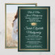 Partagez la joie d'un baccalauréat ou d'un collège et la famille et les amis invitations à célébrer avec ces photos personnalisées vert, or et blanc annonces d'invitation fête. (CONSEIL EN MATIÈRE DE PLACEMENT D'IMAGE : Une façon simple de centrer une image exactement comme vous voulez est de la rogner avant de la télécharger sur le site Zazzle.) Ce modèle de style formel comprend les noms des parents et des diplômés, ainsi que toute information de votre choix, tels que les détails de célébration, les distinctions spéciales, le titre du diplôme, la citation inspirante préférée, la nouvelle adresse du diplômé, les plans d'éducation futurs, ou le poste. Toute formulation est simple à personnaliser. Le design comprend un arrière - plan vert foncé moderne, un casquette de bordure et de tableau de mortier en feuille d'or faux, une élégante calligraphie en écriture blanche, une typographie traditionnelle et une photo de votre choix, telle qu'une image ou une photo de haut niveau de la cérémonie de début. Veuillez noter que l'or est imprimé en couleur et non en métal. Ces cartes de faire-part de remise de diplômes sont une façon branchée et chic de partager votre fête spéciale avec votre famille et vos amis. Félicitations au diplômé !