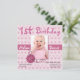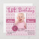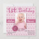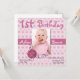 Joli arrière - plan floral rose sur cette invitation à la fête d'anniversaire carré. Une zone d'image, au milieu, pour la photo de l'enfant d'anniversaire et une fleur rose géant ornent le fond du cadre de la photo. Tout le texte est personnalisable pour répondre aux besoins de votre groupe. Parfait pour le premier anniversaire de votre petite fille. Les invitations Carrés peuvent être plus nombreux dans les postes, consultez votre bureau de poste local pour connaître les tarifs.