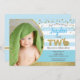 Invitation photo de fête thème lapin mignon bleu et or pour le 2ème anniversaire du bébé garçon.