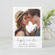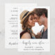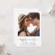 Fuite en amoureux simple et chic ou annonce de mariage privée et invitation à la réception après le mariage. Le recto présente votre photographie, « pour toujours heureux » dans un script élégant avec enjolivures et vos prénoms, date et lieu du mariage. Au verso, personnalisez votre annonce et invitation avec plus de détails, créez un code QR lié à votre site web de mariage pour que vos invités scannent pour plus d'informations et répondent en ligne, et ajoutez vos noms dans un script ressemblant à une signature.
