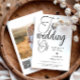 Une mise en page mariage chic et minimaliste avec un gros titre de script audacieux et d'élégants accents serif. Les noms personnalisés et les détails de date sont encadrés en noir et blanc intemporel, parfait pour les couples modernes qui aiment l'esthétique propre. Un énoncé qui allie luxe et simplicité.
