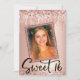 Obtenez un peu de glamour à votre douce fête d'anniversaire de 16 ans pour votre fille brillante avec cette mignonne invitation girly moderne et tendance avec gouttes de parties scintillant rose or, ajouter une photo