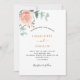 Décoré d'or rose et de fleurs rose rousse, de fleurs roses et de feuilles d'eucalyptus vert couleur eau, sprigs, de la verdure et des sprigs faux or. Personnalisez et ajoutez vos noms et les détails du mariage. Retour : ajoutez 4 photos, URL du site mariage au QR-code pour plus de détails et/ou RSVP. Une photo recouverte de blanc.