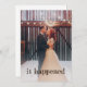 Cette annonce de mariage et invitation de réception photo rustique juste mariés présente les mots "c'est arrivé" dans une typographie rustique et en détresse sur votre propre photo et les informations de mariage et de réception au dos, et est la carte parfaite pour annoncer votre fuite. Facile à personnaliser avec votre propre photo et texte. Parfait pour la réception organisée dans une grange de mariage, un mariage en plein air ou un lieu de mariage à la ferme.