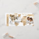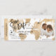 Destination Beach Wedding Boarding Pass Billet Gold Plane Économisez la Date avec l'icône coeur et avion avec des feuilles tropicaux. Ajouter votre photo