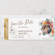 Destination Mexico Beach Wedding Boarding Pass Billet Gold Plane Enregistrer la Date avec l'icône du coeur et de l'avion avec parties scintillant rose or carte du monde. Ajouter votre photo