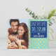 Invitation PHOTO SAVE THE DATE feuille d'or pois navy mint