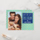 Invitation PHOTO SAVE THE DATE feuille dorée pois navy mint