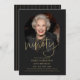 Photo Black and Gold Script 90th Birthday Invitation. Célébrez en style avec cette invitation moderne de 90ème anniversaire avec une mise en page photo complète et élégant script manuscrit en or. L’arrière - plan noir élégant et la typographie contemporaine créent un design glamour et sophistiqué qui est parfait pour marquer un jalon inoubliable. Personnalisez avec votre photo et les détails de l'événement pour un gardien chic.