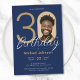 Invitation Photo simple Marine Blue Gold Hommes 30e anniversa