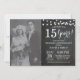 Invitation pour les 15 ans de mariage avec photo personnalisée. Fond tableau noir. Guirlande lumineuse. Noir et blanc. 1re, 2e, 3e, 4e, 5e, 10e, 15e, 20e, 25e, 30e, 35e, 40e, 45e, 50e, 55e, 60e, 65e, 70e, 75e, 80e, Toutes années. Anniversaire adulte. Fête d'anniversaire pour homme ou femme. Pour une personnalisation supplémentaire, veuillez cliquer sur le bouton "Personnaliser" et utiliser notre outil de conception pour modifier ce modèle.