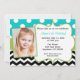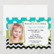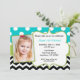 Invitation vos invités à votre fête d'anniversaire de façon amusante avec cette invitation photo en vert citron, turquoise, noir pois et chevron.