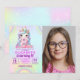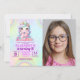 Personalized photo invite featuring a sweet unicorn illustration and pastel rainbow colors for her 8th birthday.