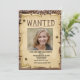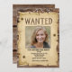Drôle Photo Western Poster Recherché Anniversaire Invitation de fête. Design a un arrière - plan de bois et de lumières et une affiche désirée avec des trous de balle. Ajoutez la photo d'une fille, d'un garçon ou d'un enfant. Customisez avec les détails de votre fête d'anniversaire.