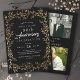 Célébrez avec ce design élégant pour l'anniversaire de la feuille d'or avec un cadre d'élégants feuilles d'or contre un arrière - plan noir. Le dos comprend un endroit pour vos photos. REMARQUE : L'or figurant sur ces invitations n'est PAS VRAI FOIL et est imprimé en couleurs plates.