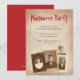 Invitations Vintages à la fête d'Halloween, par red_dress, avec le texte rouge "Halloween Party", photos antiques en noir et blanc de gens (petites filles et hommes), avec un look fantomatique, des bordures gronces vieux papier et vintage main squelette.