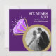 Invitez vos amis et votre famille à une fête spéciale pour votre sixième anniversaire de mariage ou à une célébration de dîner avec ces invitations comprenant un anneau d'éternité graphique doré et à paillettes blanches, violet foncé et améthyste brillant violet, avec deux photos de "alors" et "maintenant". Personnalisées avec vos propres photos du jour de votre mariage et une photo actuelle au verso, puis ajoutez vos propres mots de célébration, date de la fête et lieu. D'autres articles assortis sont disponibles. Dessin et conception graphique originale de l'anneau par www.mylittleeden.com sur Zazzle.