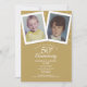 Personnalisez avec vos photos d'enfance préférées et les informations de votre cinquantième anniversaire doré spécial dans une typographie dorée élégante. Le verso présente des cœurs chic confettis sur fond doré. Conçu par Thisisnotme©