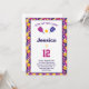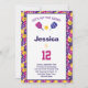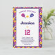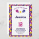 Invitation à la fête d'anniversaire de Pickleball rose néon, violet, jaune, blanc. Entièrement personnalisable. Avec carte RSVP à l'arrière