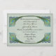 Cette décoration est composée d'un arrière - plan vieillot dans une couleur parchemin aux tons verts avec quelques plumes de paon Art Nouveau comme bordure décorative. Cela fonctionne pour n'importe quelle saison, formelle ou informelle.