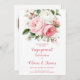 Carte fiançailles romantique avec des pivoines roses rousses, des roses blanches et une verdure douce dans un design floral intemporel, parfait pour célébrer l'amour dans un style élégant.