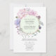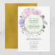 Chic de style pastel rose vif, violet et faire-part de mariage floral menthe avec cadre géométrique or et inverse.