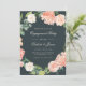 Invitation de la partie d'engagement avec des pivoines d'aquarelle rose vif avec une belle végétation d'eucalyptus formant une couronne florale sur un arrière - plan gris foncé.
