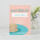 Invitation nuptiale de douche de crêpe mignonne avec une pile de crêpes d'un plat de turquoise.