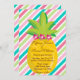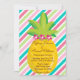 Un régal tropical, ce faire-part de mariage à rayures d'ananas et d'arc-en-ciel est doté d'un arrière - plan rayé en diagonale rose et bleu avec un ananas jaune placé au milieu du faire-part de mariage. Les informations de cérémonie sont écrites à l'intérieur de l'ananas en utilisant une police noire. Parfait pour un mariage d'été, achetez ces invitations de mariage adorables aujourd'hui! Conception de l'invitation : WeddingsbyRhoadie Bandes Arrière - plans : AMBillustrations http://www.etsy.com/shop/AMBillustrations/ Ananas et fleurs : Prettygrafik design (https://www.etsy.com/shop/Prettygrafikdesign)