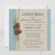 Pinecones et l'allure de burlap sur un bleu clair doux sur cette jolie invitation à la nuptiale ou à la douche du couple. Modifiez le texte pour n'importe quelle occasion. Cette invitation est totalement imprimée. Il n'y a pas de véritable burlap ni de pinceaux attachés.