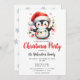 Créez de jolies invitations à la fête de Noël avec un pingouin gai dans un chapeau de Père Noël rouge tenant des lumières de Noël. Cet invitation moderne de Noël est conçu sur un arrière - plan blanc et l'arrière est décoré de flocons bleus. Le modèle permet de customiser facilement le texte pour le nom de famille, la date et l'heure, l'adresse, le RSVP et le code vestimentaire de la fête. Si vous souhaitez apporter d'autres modifications, vous pouvez utiliser l'outil de conception Zazzle.