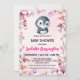 Invitation Pingouin rose mignon fleur baby shower enfants