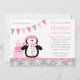 Invitation Pingouin Snowflakes Pink Winter Onederland Anniver