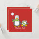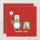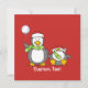 Un petit dessin de pingouin avec boule de neige et un évanoui. Les deux portent des foulards verts et des chapeaux santa.
