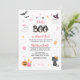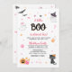 Girl Halloween A Little Boo Ghost Baby shower Invitation Présentant notre enchanteresse Halloween Theme Baby shower Invitation, où d'adorables citrouilles, des casquettes de sorcières fantaisistes, des fantômes amicaux, des potions magiques, et un parfum de lune et d'étoiles se réunissent pour créer une célébration inoubliable!