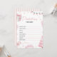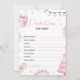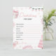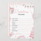 Adorable pink “Predictions for Baby” card featuring soft winter illustrations including a gift box, pink Christmas lights, snowflakes, candy cane, foliage, and pastel pink tree. Guests can fill in fun guesses such as date of birth, weight, length, eye color, hair color, gender, and baby’s name. Perfect for winter baby showers, “Baby It’s Cold Outside” themes, and baby shower games.