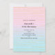 Une invitation d'anniversaire avec un motif abstrait cool. Dégradé pastel dans les couleurs rose et bleu avec de fines rayures dorées.