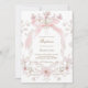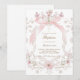 Invitation pink bow and flowers frame Baptism girl