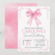 A pretty pink coquette ribbon with a ribbon border. An adorable theme for your little one's birthday party.