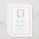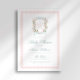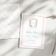 Featuring a pink scalloped border, delicate magnolia florals, and a monogram crest with soft blue ribbon details, this design blends Southern charm with heirloom elegance. Fully editable to suit your event and baby’s name—perfect for garden gatherings, spring showers, or traditional celebrations.