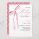 A perfect way to celebrate a girl baby shower with this elegant pink coquette bow theme. Shower the mother-to-be with this pretty and pink ribbon and bow theme baby shower. Invite your girl friends with this baby shower invitation featuring a hand drawn sophisticated blush pink bow accent.