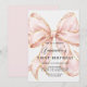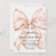 Create a charming and unforgettable first birthday with this beautiful pink bow invitation.