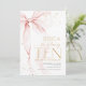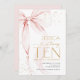 Pink bow girl's 10th birthday invitation. Modern feminine design in blush pink and gold. Features trendy watercolor coquette bow, calligraphy heart script font and modern typography TEN. Perfect for an elegant style girl's tenth bday celebration. Personalize with your own details. Printed Zazzle invitations or instant download digital printable template.