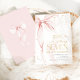Pink bow girl's 7th birthday invitation. Modern feminine design in blush pink and gold. Features trendy watercolor coquette bow, calligraphy heart script font and modern typography SEVEN. Perfect for an elegant style girl's seventh bday celebration. Personalize with your own details. Printed Zazzle invitations or instant download digital printable template.